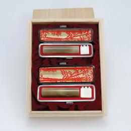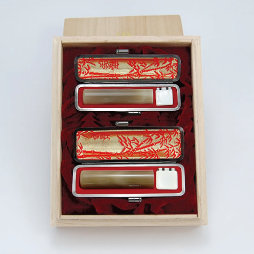 牛角(白) 実印・銀行印 2本セット 牛モミ皮印鑑ケース付き