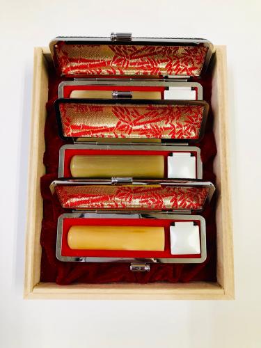 牛角(白) 実印・銀行印・認印 3本セット 牛モミ皮印鑑ケース付き