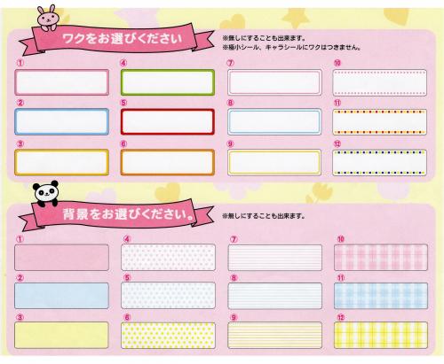 シールデザインも12種類の枠線、背景から自由にお選びいただけます。